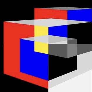 Dick benadert de wereld met een grafisch oog. Geïnspireerd door architectuur en vormgeving schildert hij met een palet van wit, grijs, zwart en primaire kleuren.