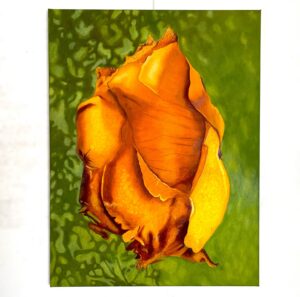 The work of Marieke consists of imaginary portraits featuring the staghorn fern; a representation of thoughts about the plant’s beauty. Sapphire-green leaves and dry, faded remains. Wind in the hair and the shade of the sun. Indian yellow and purple mixed, the palette with its many greens, a warm interplay of colors to behold.